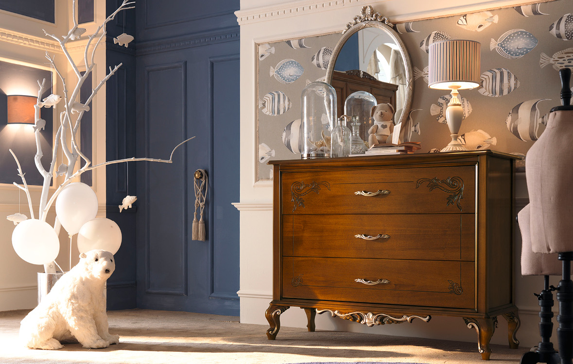 Ideale per chi cerca un arredamento che unisca lo stile classico alla funzionalità, ogni pezzo è un attento lavoro di intaglio e finitura, che riflette anche nel più piccolo particolare la cura e la perizia artigianale scelta dal nostro marchio come caratteristica peculiare della sua produzione.